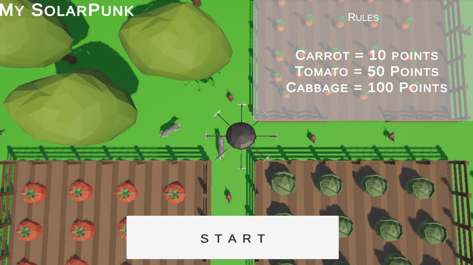 You can move your drone, drop seeds and collect vegetables once they have grown.